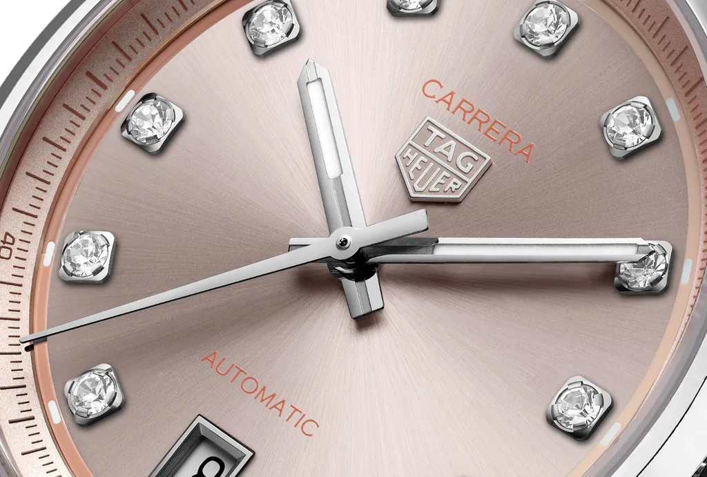 The collaboration is perfect for Daddario, who’s regularly spotted trackside. In TAG Heuer’s The Chase for Carrera campaign, she brings a sporty-cool elegance, pairing her pink Carrera Date with a leather racing jacket. And she’s not alone in her dedication to the sport. Ask any gen Z or millennial woman and they’ll likely recognise fan-favourite drivers Daniel Ricciardo, Lewis Hamilton and Max Verstappen.