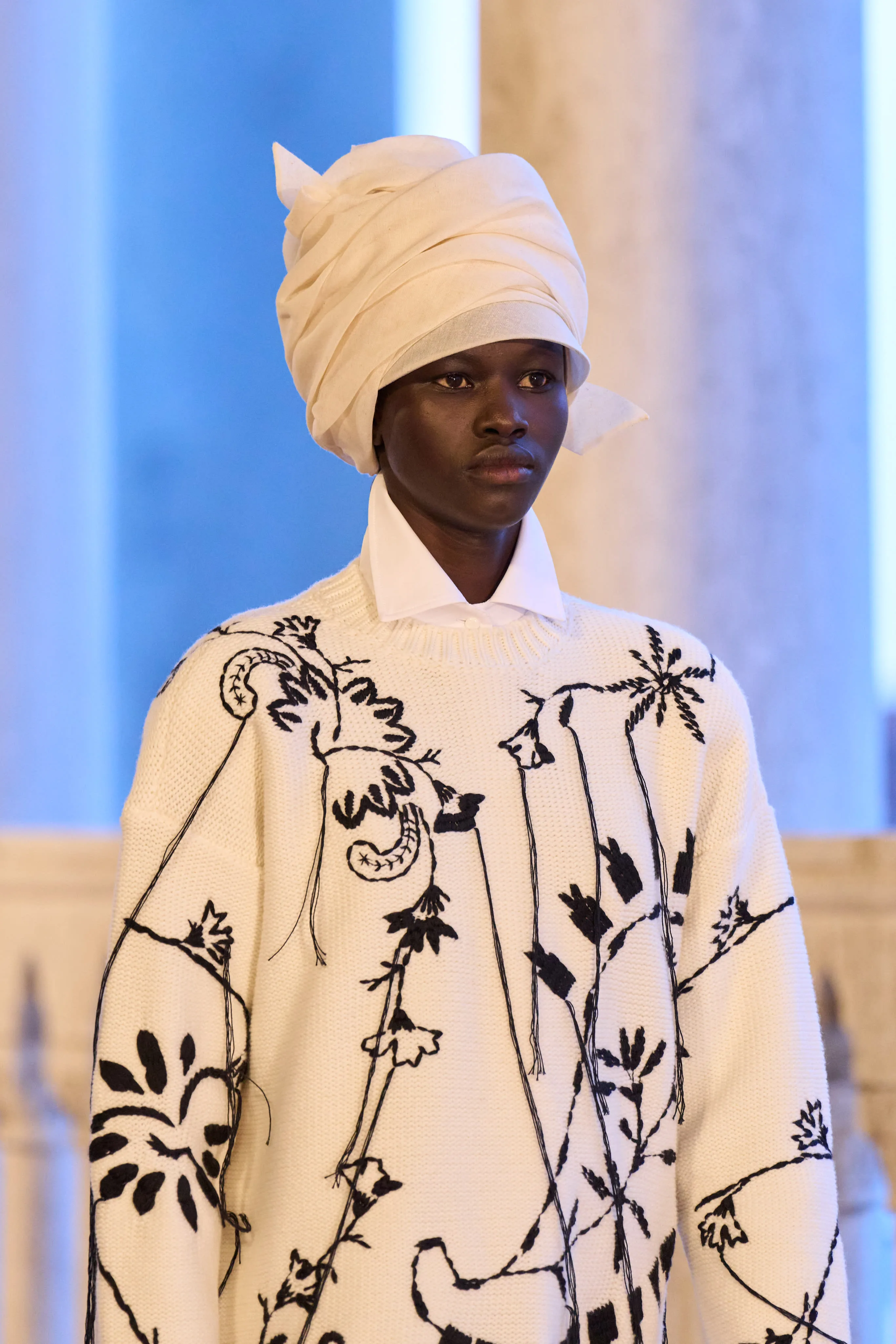 Throughout, Griffiths presented a crop of turban-inspired headpieces created in collaboration with milliner Stephen Jones.
