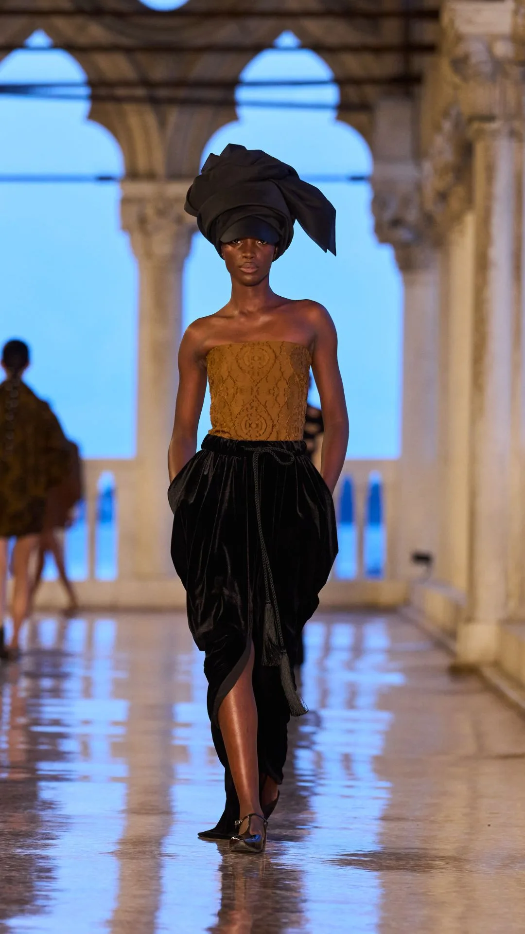 Venetian Gothic informed silhouettes and shape, with the city’s unique, culture-blending architecture informing a unique, magical style.