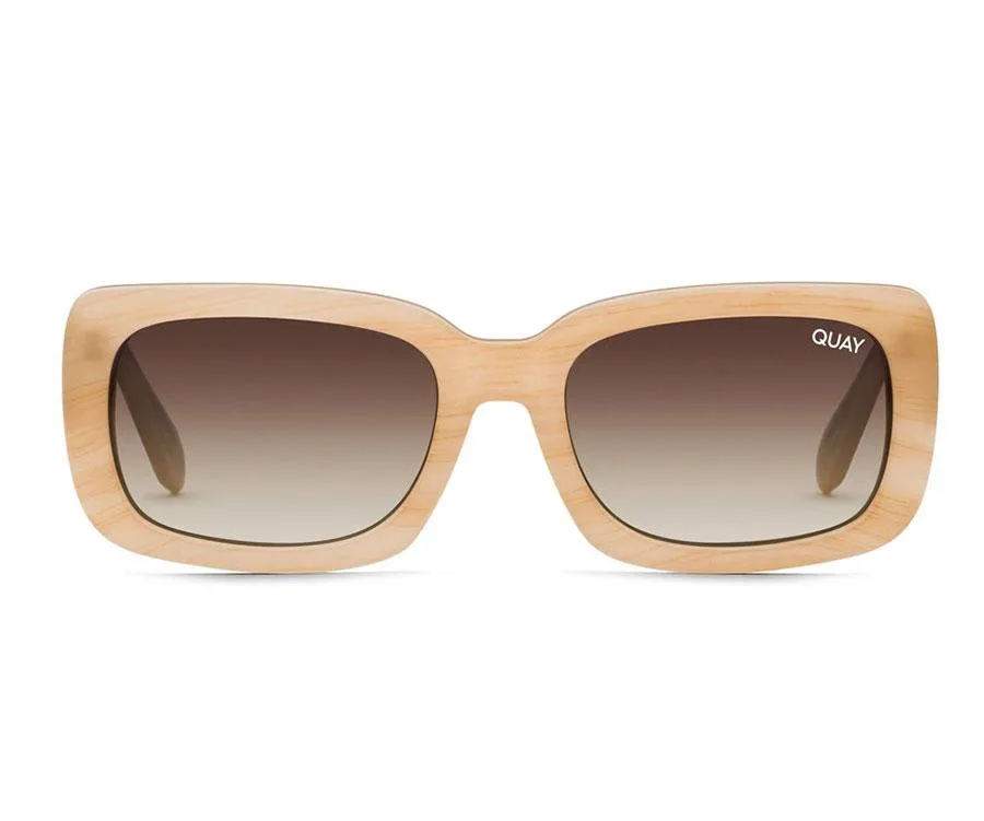 A classic navigator shape, Quay’s On The Fly shades offer a slightly more square look. With a bold frame and eye-catching coloured lenses to offer a stylish pop to any outfit, they’re the ultimate in modern-retro vibes. We love the contrast of the black and pink fade, but they are also available in an unmissable orange and traditional tortoise shell frames.